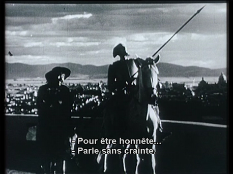 One amusing translation note comes during the scene in which Quixote tries to rescue a woman he perceives to be captured by a dragon (and is actually just riding a Vespa). When the woman (Paola Mori) finally rides off, on the English soundtrack she says "Get stuffed!" The French subtitles read "Go fuck yourself!" I like the French version better, as it's a more shocking response to Quixote's blind chivalry.